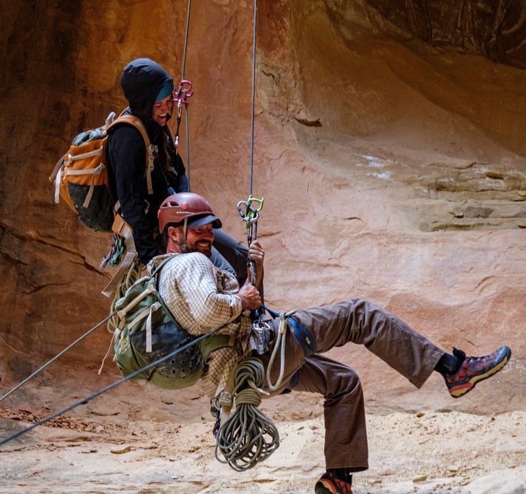 Raena grew up in Salt Lake City, Utah by a family who loved the outdoors. She spent her downtime assisting her mother on adventure trips to Iceland, Hawaii and Italy. When she realized she could get a degree in Guiding, there wasn't a question. She got a Bachelors of Science in Adventure and Outdoor Programming at The University of Utah. She proceeded to guide canyoneering, hiking and backpacking for the next 10 years with different companies like REI Adventures, GAdventures and Far and WIde Explorations. Climbing is her own favorite personal hobby but Canyoneering is by far her favorite to guide!